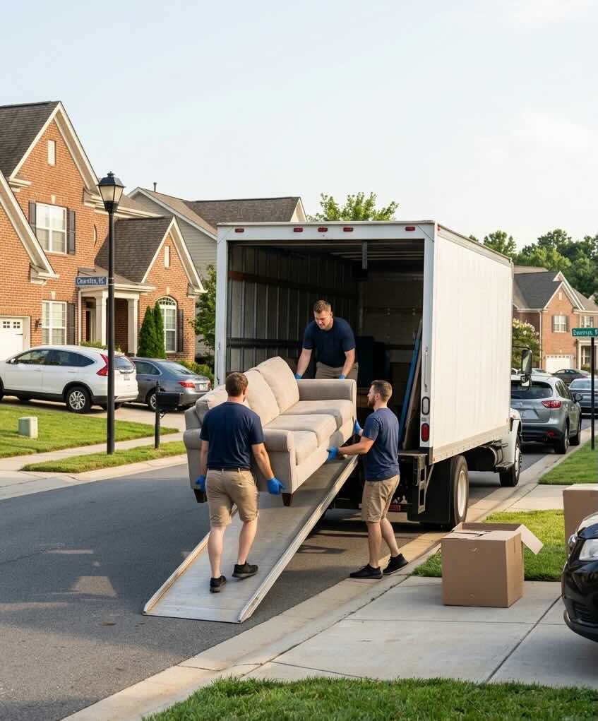 Costs across North Carolina often vary by city and property type. Downtown areas such as Charlotte and Raleigh may involve parking limits and building access rules, while suburban homes around Cary, Apex, Huntersville, and Matthews usually allow driveway staging, which can shorten loading time.