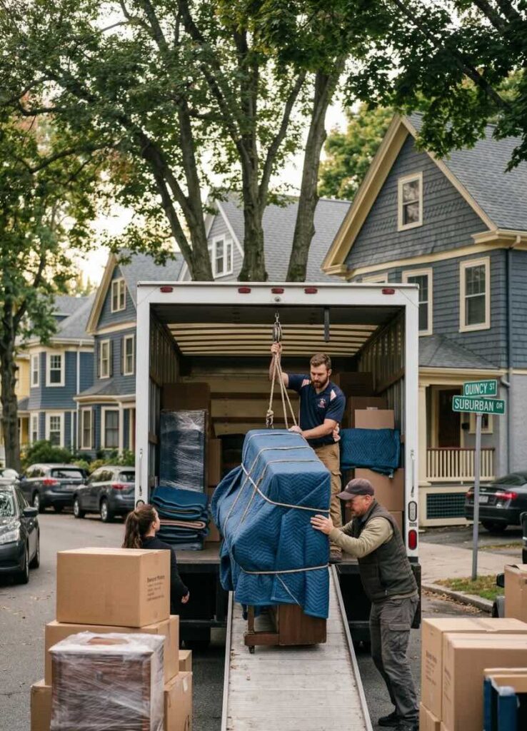 Costs in Massachusetts are often shaped by property type and location. Boston and Cambridge frequently involve limited curb space, older buildings without elevators, and longer walks from truck to entrance. Suburban areas like Newton, Waltham, and Quincy typically allow closer staging, which helps reduce labor time when access is straightforward.