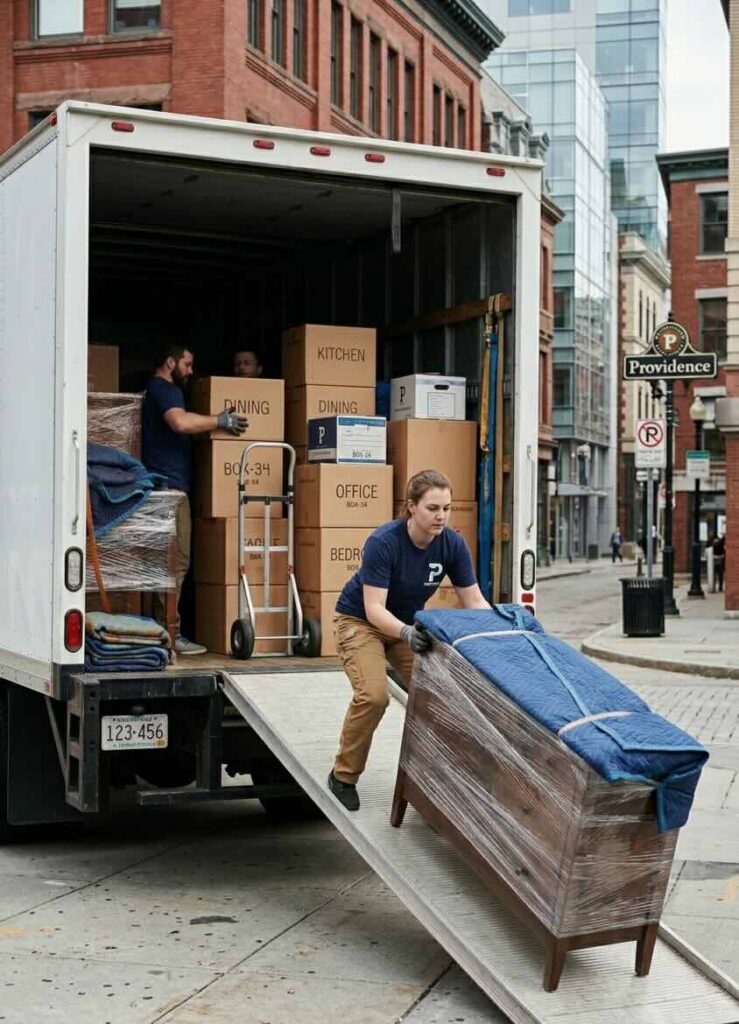 Costs in Rhode Island are often shaped by access and location. Dense areas like Providence and Newport can involve limited curb space and tighter streets, while suburban homes in Warwick, East Greenwich, and North Kingstown usually allow driveway staging, which can reduce loading time.